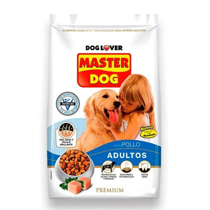Alimento completo y balanceado recomendado para tu Master Dog Adulto Razas Medianas y Grandes, desde los 18 meses hasta los 7 años. Contiene Omega 3 para una piel sana y pelaje brillante. Además contiene proteínas de alta calidad, vitaminas y minerales que tu Master Dog necesita para mantenerse fuerte y saludable.